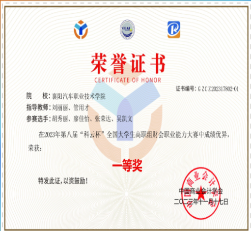 “科云杯”财会职业能力大赛一等奖