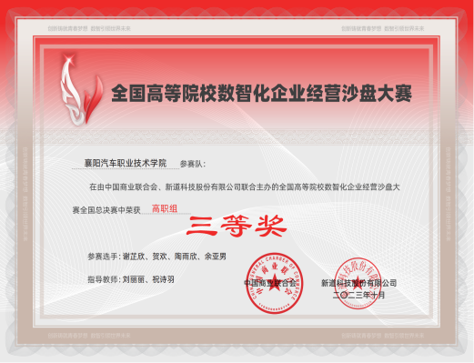 数智化企业经营沙盘大赛省赛二等奖、三等奖