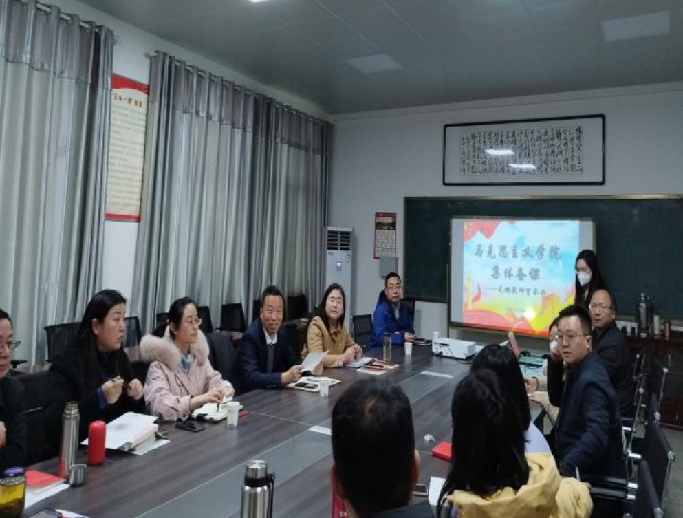 为了发挥集体的智慧,提高教师教学水平,打造高效课堂。3月24日下午,马克思主义学院集体备课会在5号楼202会议室举行。参加本次集体备课会的有学校党委书记余荣宝、副校长包科杰、教务处处长刘旭光和马克思主义学院全体思政课教师共计30余人,此次备课会由马克思主义学院院长唐金琴主持。