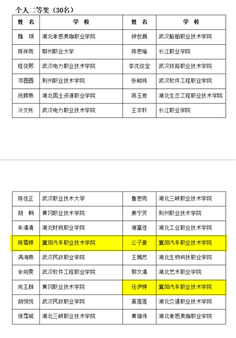 日前,第十届湖北省高职高专院校“共享全民阅读”活动线上总决赛成绩揭晓,我校公子豪、陈雪婷、任伊婷三名同学分别荣获省级个人二等奖。同时,我校荣获省级团体三等奖,这是我校历年来在此赛项上取得的最好成绩。