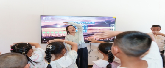 互动环节将活动推向了温馨与欢乐的高潮。爱心妈妈阮珍首先带领孩子们学唱了充满温暖与力量的歌曲《不要慌太阳下山有月光》。起初,孩子们还有些羞涩,声音细小,在阮珍妈妈一遍遍耐心地示范和温柔的鼓励下,清澈的童声逐渐汇聚,越来越响亮、越来越整齐。“不要慌,太阳下山有月光,不要怕,月亮西沉有朝阳…” 歌声在活动室里回荡,歌词中蕴含的希望与坚韧仿佛化作无形的暖流,抚慰着孩子们的心灵。当唱到“总有人为你点盏灯,照亮你前方”时,不少孩子悄悄望向身边的“爱心妈妈”,眼中闪烁着信赖的光芒。