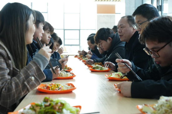 餐桌上,王保成亲切询问同学们在校的学习生活情况,认真听取大家对课程设置、校园服务、职业规划、饮食安全等方面的想法与建议,并逐一予以回应和解答。他勉励同学们珍惜时光,夯实专业基础,提升综合能力。同学们表示,此次活动拉近了与校领导的距离,感受到了学校的关怀,收获颇丰。