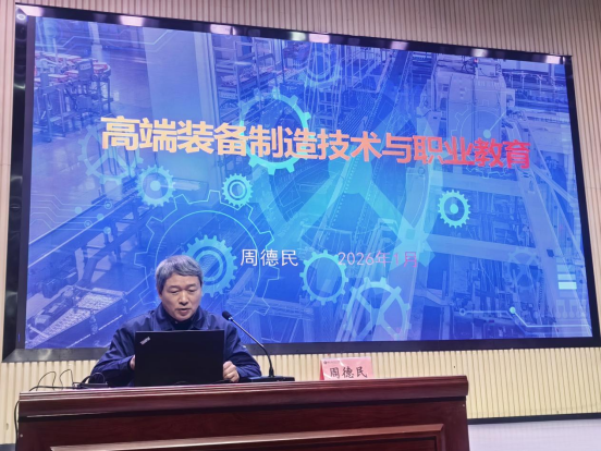 专题报告环节,周德民以“高端装备智能制造技术与职业教育”为题,结合一线实战案例,深入剖析行业趋势与技术难点,为在场教师带来了一场内容充实、视角前沿的匠心讲堂。
